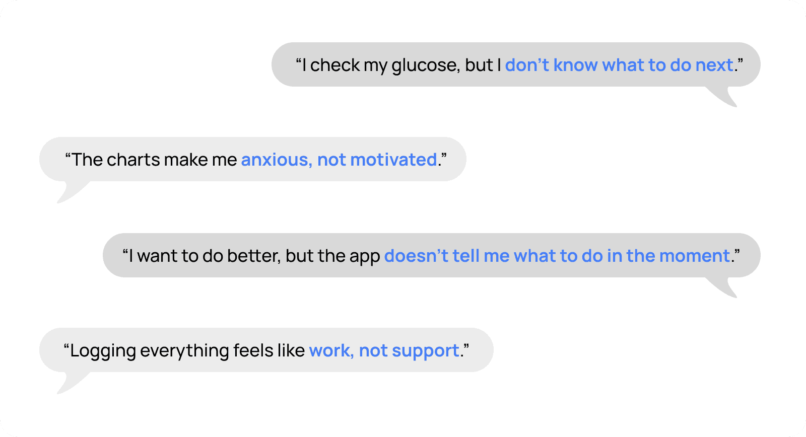 Early interviews with CGM users and pre-diabetics revealed a consistent pattern. People understood that glucose mattered and were motivated to improve their health, yet struggled to translate insight into action.